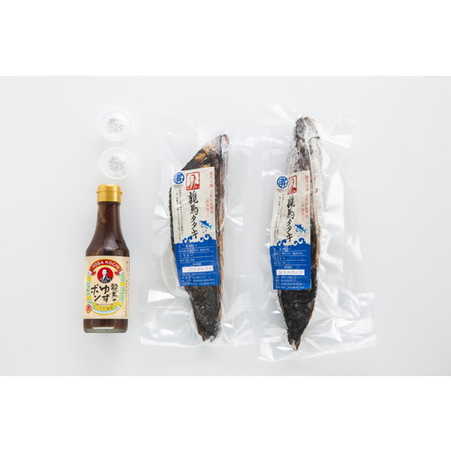 鰹タタキ2本(約計700g)、ぽん酢200ml、塩6g×2個※北海道、沖縄県、離島へのお届けできません。